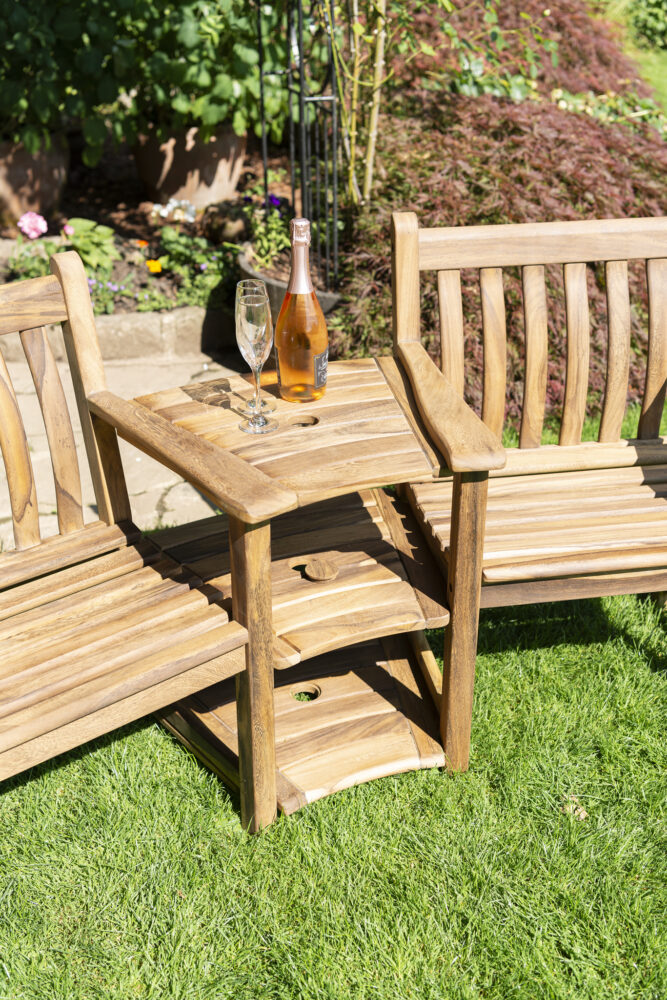 New for 2024 season. A fan favourite – our classic companion set now in our stunning Albany range. Take in the surroundings of your outdoor space with company and a beverage. Complete with central parasol hole.